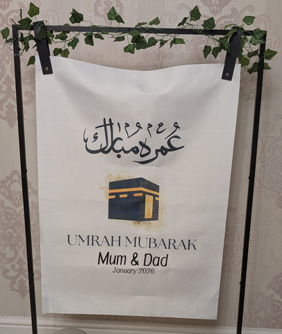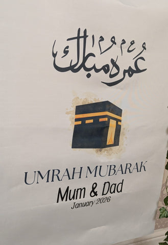 This Umrah Mubarak banner adds a wonderful touch to your Umrah celebrations.